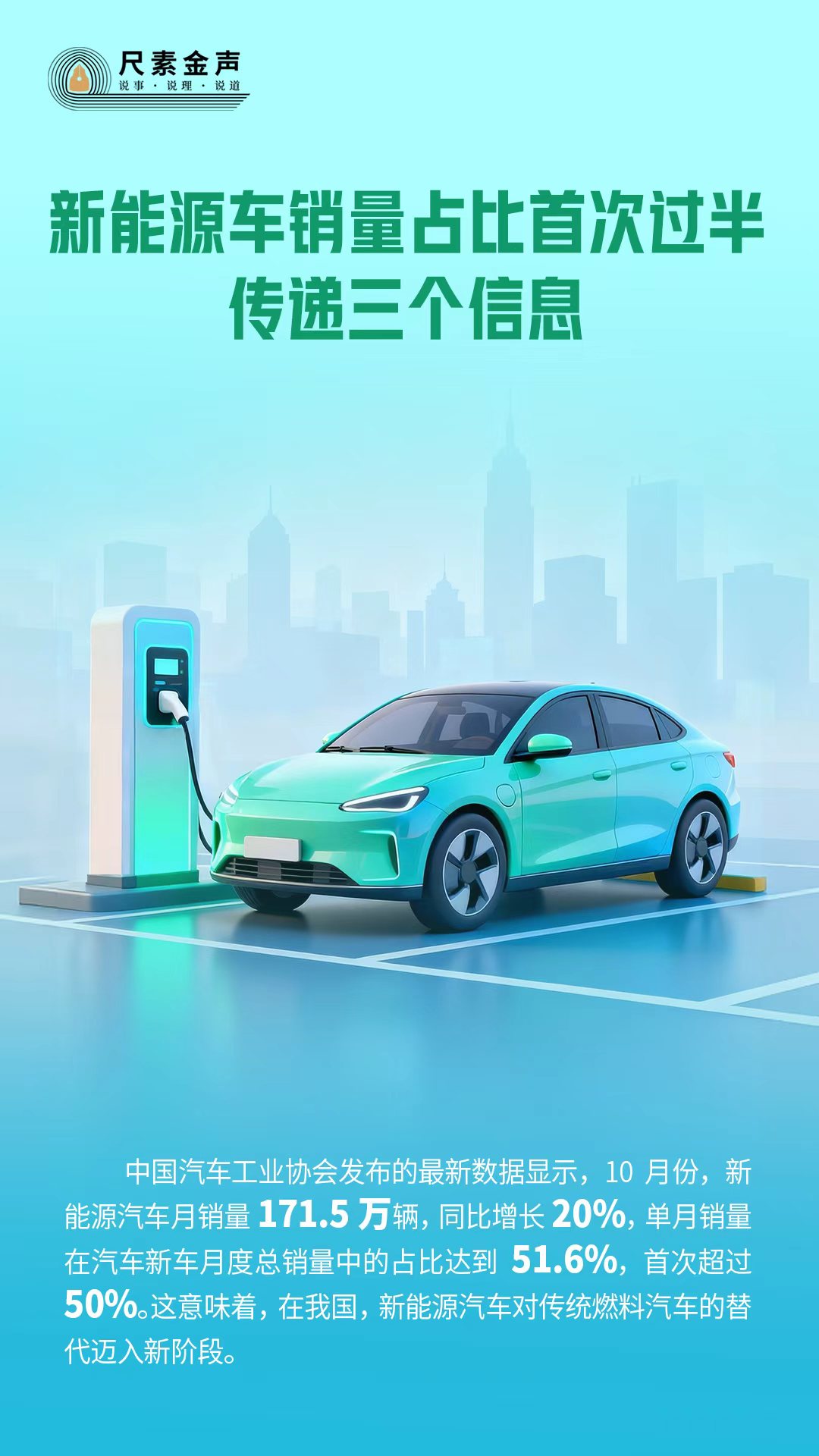 新能源車銷量占比首次過半,傳遞三個信息。