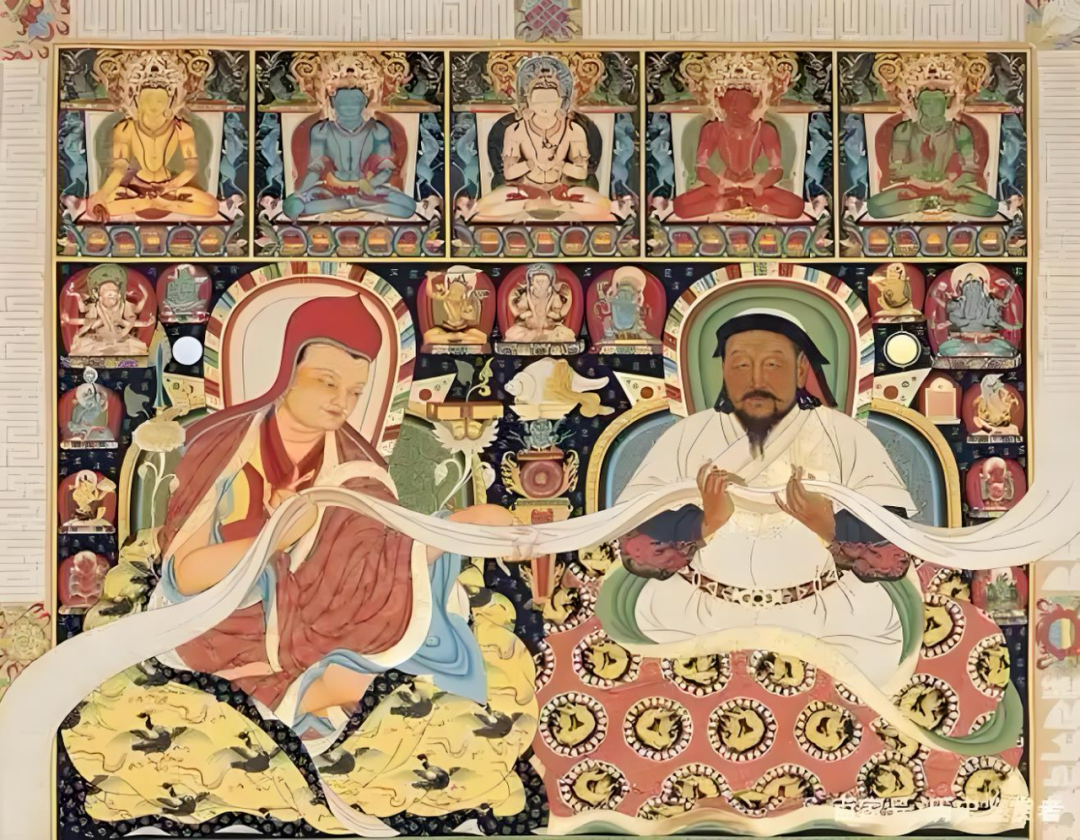 蒙古族自元朝以來普遍信仰藏傳佛教,也改變了中國北方和西北民族、邊疆的政治、地域和宗教文化面貌。同時,蒙古人長期以來在西藏地方的政治和宗教史上都扮演了極為重要的角色,從八思巴與忽必烈,到三世達賴喇嘛與俺答汗、五世達賴喇嘛與固始汗,他們之間都建立起了“施供關(guān)系”,體現(xiàn)了蒙藏之間緊密的政教關(guān)系。