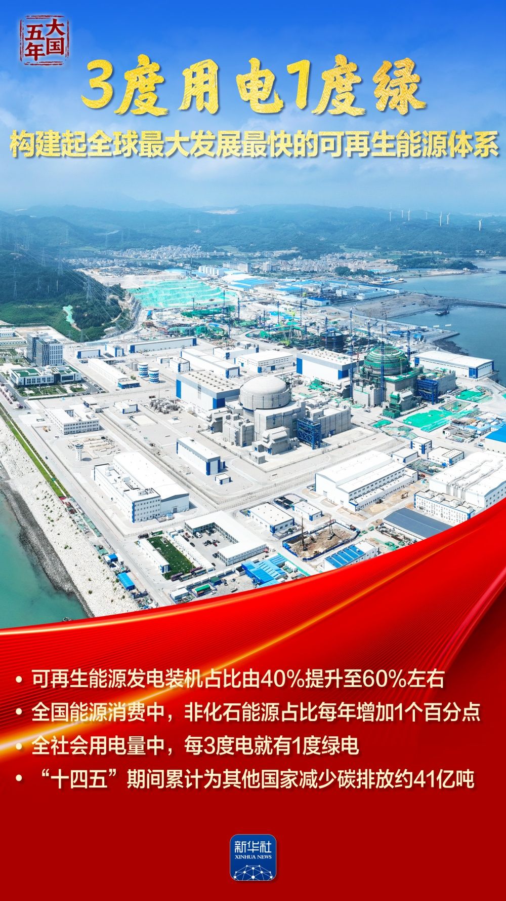 全社會用電量中,每3度電就有1度綠電;風(fēng)電光伏裝機歷史性超過火電,新能源發(fā)電增量占全國新增發(fā)電量近一半;全國統(tǒng)一電力市場加快構(gòu)建,塞北的風(fēng)點亮灣區(qū)的燈……“十四五”期間,我國能源建設(shè)逐“綠”向“新”,筑牢能源安全的堅實底座,繪就民生幸福的溫暖底色,夯實“雙碳”目標(biāo)的實現(xiàn)基礎(chǔ)。