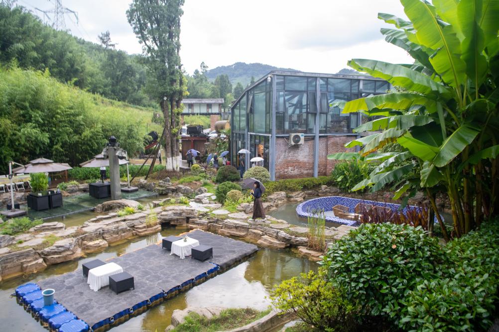 2025年8月15日拍攝的用礦山遺址改造的民宿。近年來,重慶市梁平區(qū)竹山鎮(zhèn)獵神村立足自然資源優(yōu)勢,積極推動林業(yè)相關產(chǎn)業(yè)融合發(fā)展,將原有礦山塌陷區(qū)域進行功能重構和空間再塑,打造有山有水的小微濕地群落。新華社記者 唐奕 攝