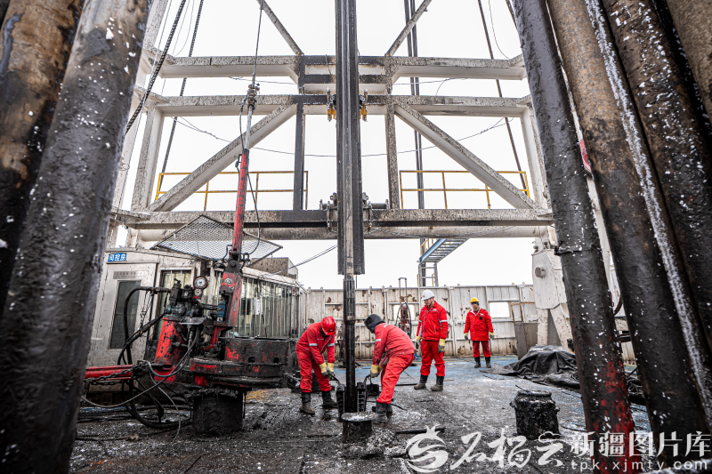 12月8日,中國石油新疆油田吉慶作業(yè)區(qū)頁巖油JHW74-33井現(xiàn)場(chǎng)鉆機(jī)轟鳴。徐志遠(yuǎn) 攝