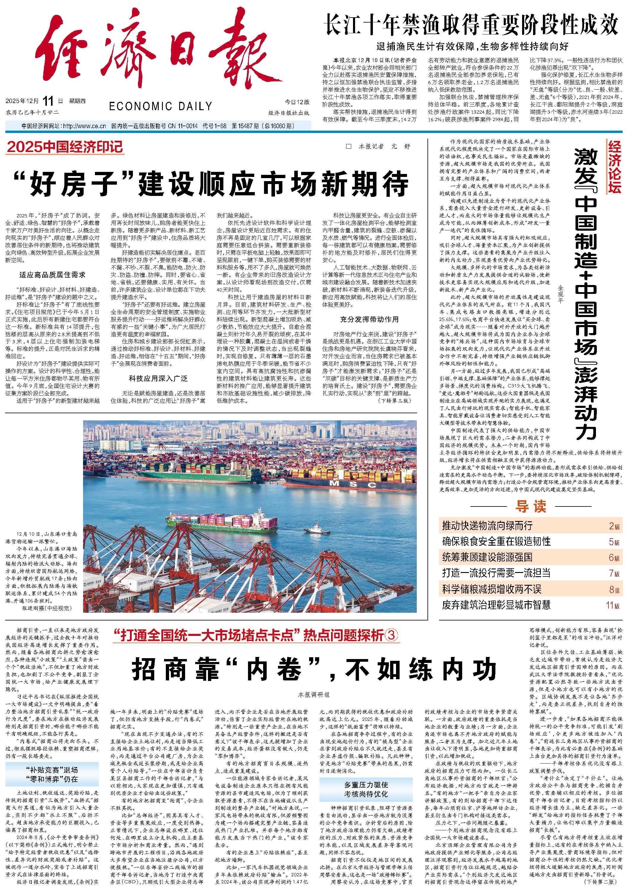 充分激發(fā)“中國制造+中國市場”的澎湃動能,要形成需求牽引供給、供給創(chuàng)造需求的更高水平動態(tài)平衡。下一步,要持續(xù)深化市場改革,破除體制機制障礙,釋放超大規(guī)模市場內(nèi)需潛力;打造公平合規(guī)營商環(huán)境,推動產(chǎn)業(yè)體系向更高質(zhì)量、更高效率、更加靈活的方向邁進,為中國式現(xiàn)代化建設(shè)奠定堅實基礎(chǔ)。