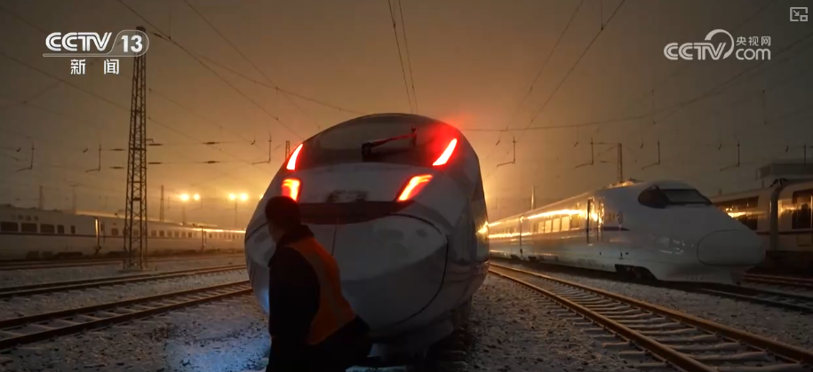 央視網(wǎng)消息:12月12日,京津冀地區(qū)迎來今冬首場(chǎng)大范圍降雪。為確保動(dòng)車組列車在低溫環(huán)境下運(yùn)行狀態(tài)良好,國鐵北京局連夜開展防寒加溫作業(yè)。工作人員在零下5℃的環(huán)境中,為動(dòng)車組啟動(dòng)空調(diào)系統(tǒng),提升車廂溫度,防止車內(nèi)設(shè)備、水管等因低溫凍結(jié),保障動(dòng)車組列車第二天安全正點(diǎn)出發(fā)。