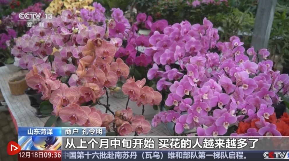 央視網(wǎng)消息:元旦臨近,各地花卉市場(chǎng)迎來(lái)銷售高峰。在山東菏澤市,蝴蝶蘭和杜鵑等年宵花卉集中上市,商家們正抓緊備貨,供應(yīng)節(jié)日市場(chǎng)。