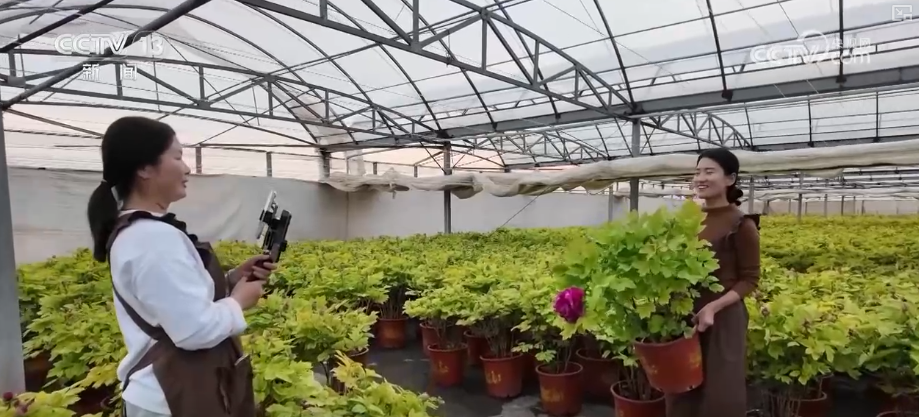 除了線下銷售渠道,工作人員也在大棚里架起手機(jī),通過網(wǎng)絡(luò)直播把牡丹賣到全國(guó)各地。