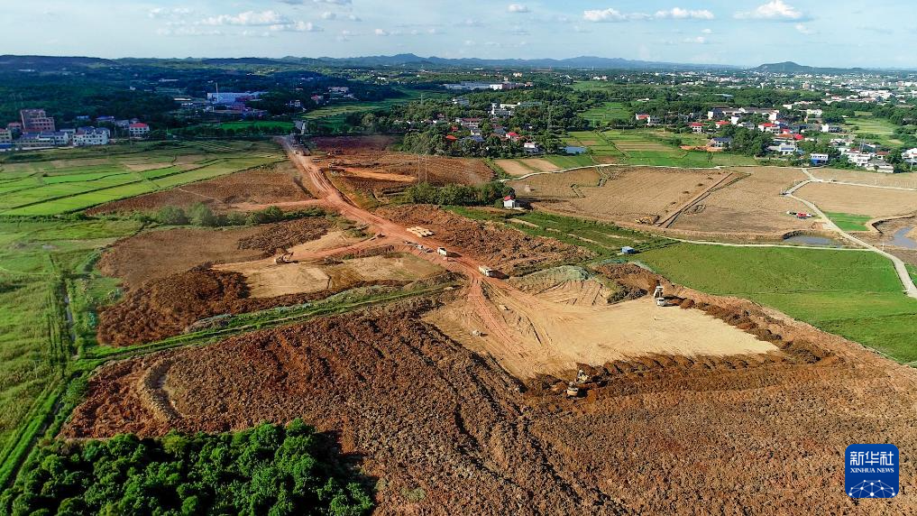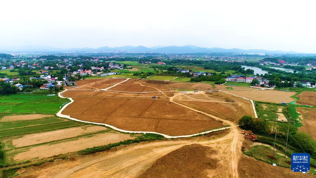 這是2022年8月31日拍攝的瀏陽市永安鎮(zhèn)豐裕村嚴(yán)格管控區(qū)地塊覆土作業(yè)現(xiàn)場(chǎng)(無人機(jī)照片)。新華社發(fā)(鄒禮卿 攝)