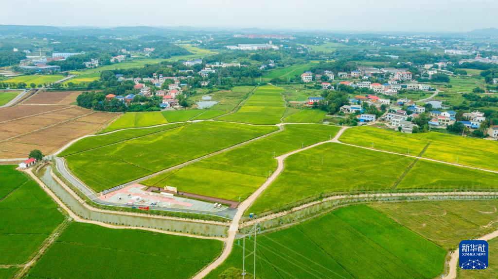 這是2024年6月19日在瀏陽市永安鎮(zhèn)豐裕村拍攝的稻田(無人機(jī)照片)。新華社發(fā)
