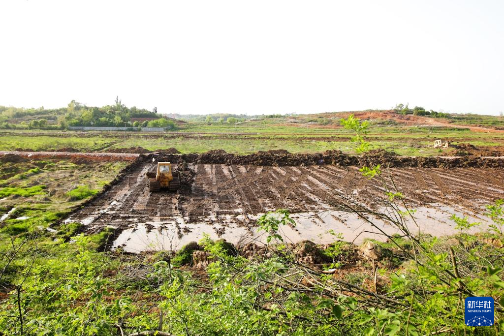 2022年4月7日,長沙機(jī)場(chǎng)改擴(kuò)建項(xiàng)目被占耕地在進(jìn)行耕作層剝離作業(yè)。新華社發(fā)(鄒禮卿 攝)
