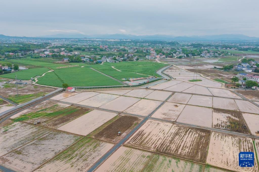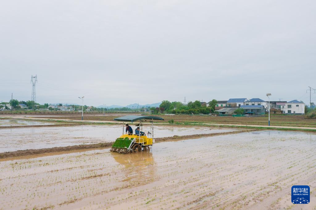 2024年6月19日,在瀏陽市永安鎮(zhèn)豐裕村改良后的耕地上,村民操作機(jī)械插秧。新華社發(fā)