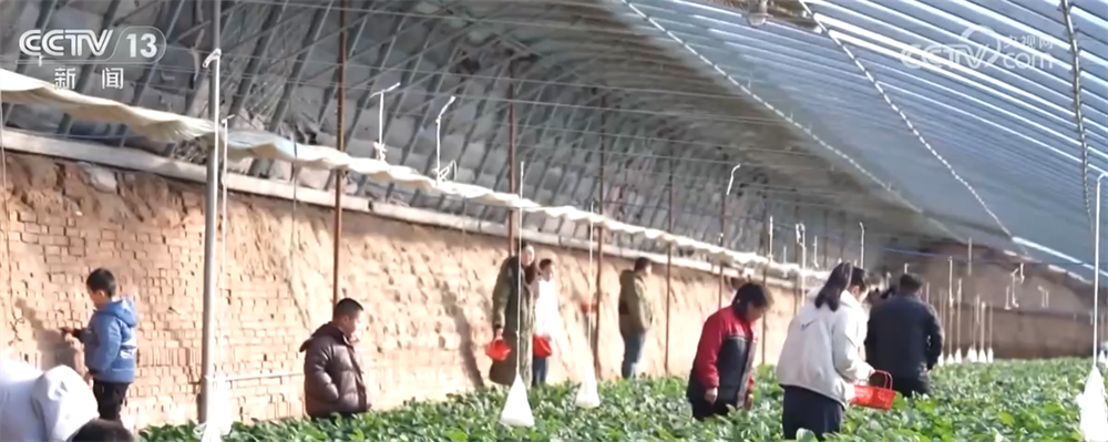 高標(biāo)準(zhǔn)日光溫室大棚整齊排列,通過現(xiàn)代農(nóng)業(yè)技術(shù)的賦能,這里的草莓實現(xiàn)冬季掛果、蔬菜四季常青,引得周邊市民游客紛至沓來。游客們提著果籃穿梭在翠綠的壟間,歡聲笑語與果蔬清香交織,勾勒出一幅熱鬧的田園圖景。