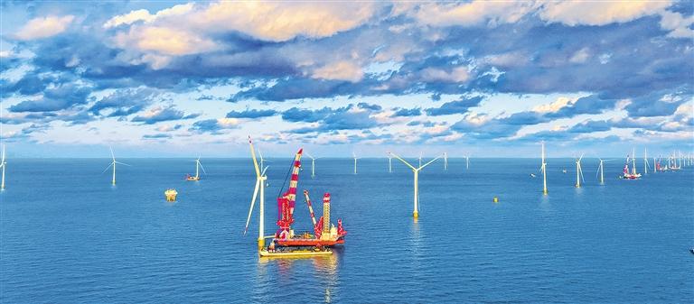 山東能源集團(tuán)新能源集團(tuán)有限公司投資建設(shè)的渤中A、B兩個(gè)場(chǎng)址90萬千瓦海上風(fēng)電場(chǎng)。2022年12月底,該項(xiàng)目實(shí)現(xiàn)全容量并網(wǎng)發(fā)電。公振普攝(中經(jīng)視覺)