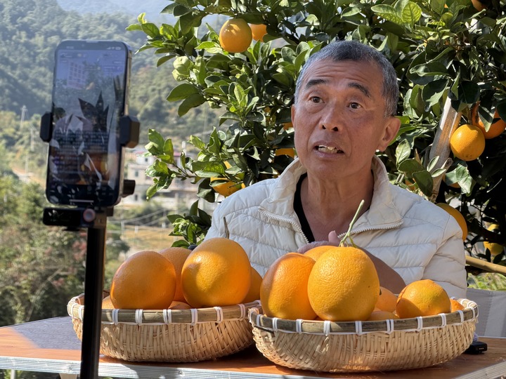 臺(tái)灣嘉義的王文瑞在祖籍地——江西贛州直播推介贛南臍橙,他的“臺(tái)灣阿公”新媒體賬號(hào)吸引全網(wǎng)超100萬(wàn)粉絲關(guān)注。新華社記者 陳柱佐 攝