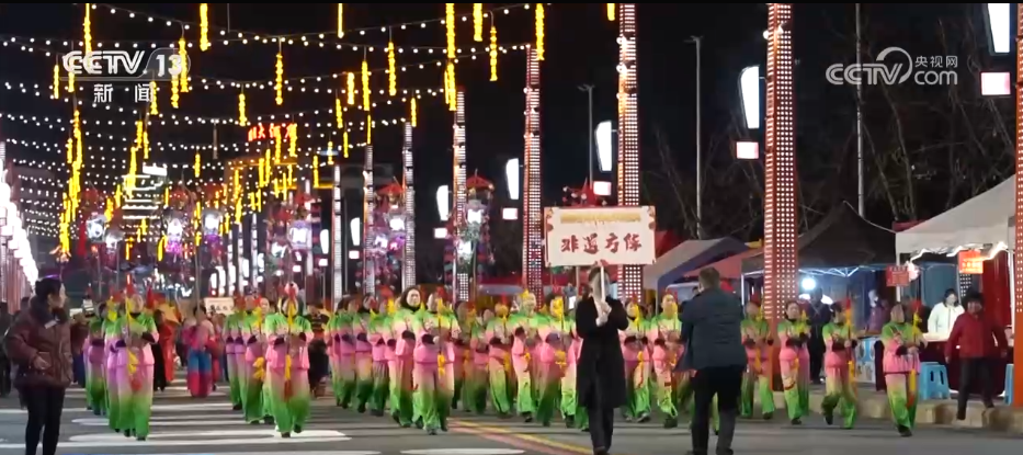 向舞臺走去的是非遺方陣從前到后分別是錢桿舞、花燈戲,以及高矮人舞這三個(gè)節(jié)目都是余慶當(dāng)?shù)氐馁F州省級非遺。每當(dāng)逢年過節(jié)的時(shí)候,當(dāng)?shù)厝罕姸紩虬缫环瑏淼浇诸^,向周圍的觀眾們送去節(jié)日的祝福。