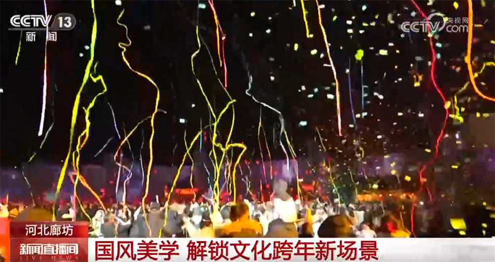 2025年12月31日晚,在河北廊坊一景區(qū),一場融合了沉浸式戲劇、新歲祈福與青春狂歡的跨年盛宴,吸引了上萬名游客。隨著新年零點鐘聲的響起,印有祝福語的彩帶傾瀉而下,游客仿佛置身“彩帶海洋”。數(shù)百盞系著游客心愿卡的孔明燈緩緩升起,點亮新年的夜空。