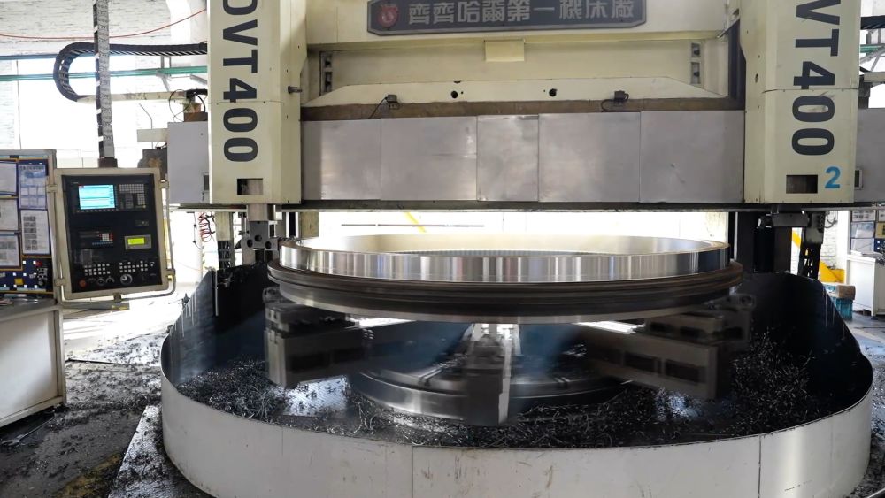 在洛軸集團風電軸承生產(chǎn)車間,一排排機床正井然有序地加工著一批風電偏航軸承。