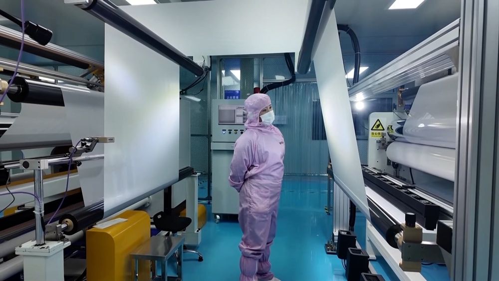 在園區(qū)內(nèi)的湖南壹鑫科技有限公司無塵生產(chǎn)車間,光學薄膜自動化生產(chǎn)線正滿負荷運轉。