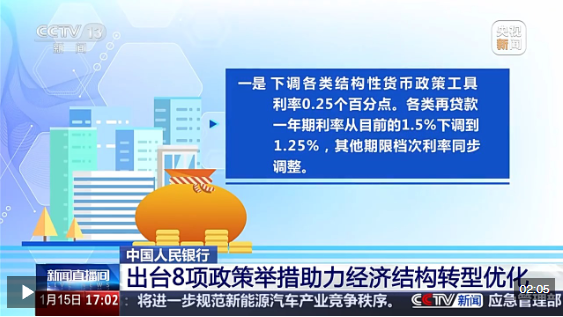 一是下調各類結構性貨幣政策工具利率0.25個百分點。各類再貸款一年期利率從目前的1.5%下調到1.25%,其他期限檔次利率同步調整。