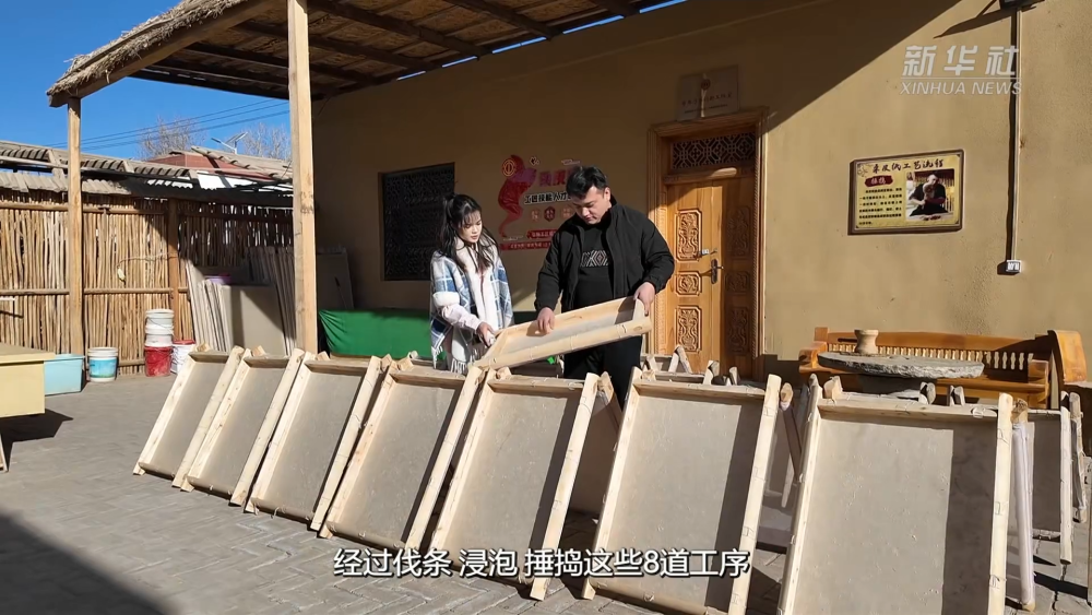 在她小時(shí)候,爺爺總說,以前沒有紙的時(shí)候,鄉(xiāng)親們就取桑樹皮,經(jīng)過伐條、浸泡、捶搗等8道工序,一點(diǎn)點(diǎn)做出桑皮紙。長大后她才知道,這是能保存千年、防蟲防蛀的國家級非遺代表性項(xiàng)目,是絲綢之路上的“文化活化石”。
