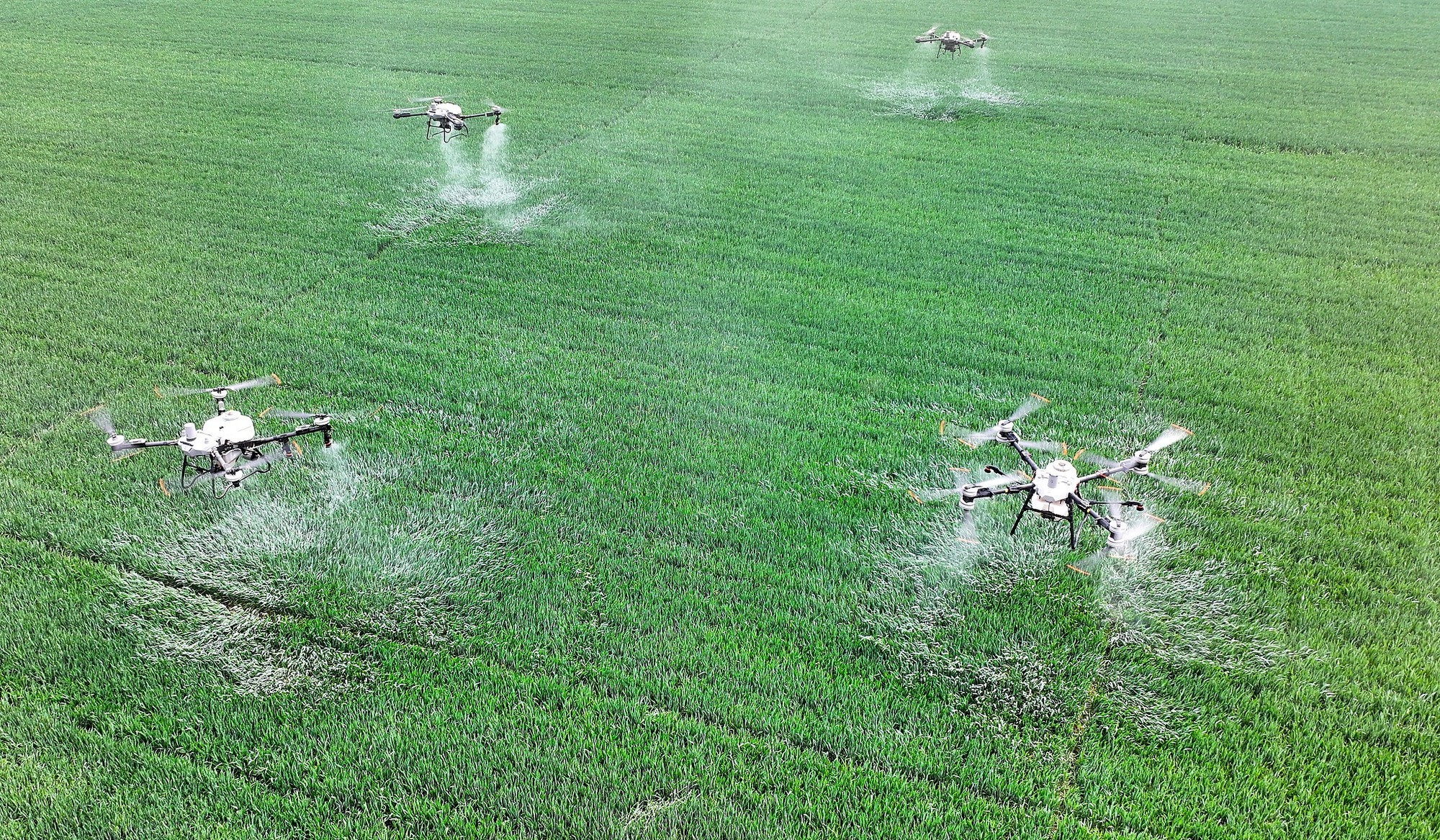 2025年4月9日,安徽省亳州市利辛縣永興鎮(zhèn)諸王社區(qū),種糧大戶利用植保無(wú)人機(jī)給小麥噴灑藥物。