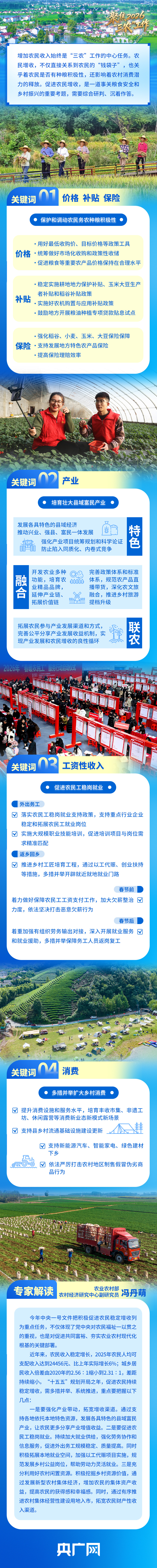 2月3日,《中共中央 國務(wù)院關(guān)于錨定農(nóng)業(yè)農(nóng)村現(xiàn)代化 扎實(shí)推進(jìn)鄉(xiāng)村全面振興的意見》公布。這是黨的十八大以來,中央連續(xù)出臺(tái)的第14個(gè)指導(dǎo)“三農(nóng)”工作的一號(hào)文件,也是“十五五”時(shí)期的首個(gè)中央一號(hào)文件。今年中央一號(hào)文件把促進(jìn)農(nóng)民增收擺在重要位置,提出了一攬子增收措施,打出一套政策“組合拳”。接下來,我們?cè)撊绾伟选胺€(wěn)定增收”落到實(shí)處?央廣網(wǎng)約請(qǐng)相關(guān)專家進(jìn)行解讀。
