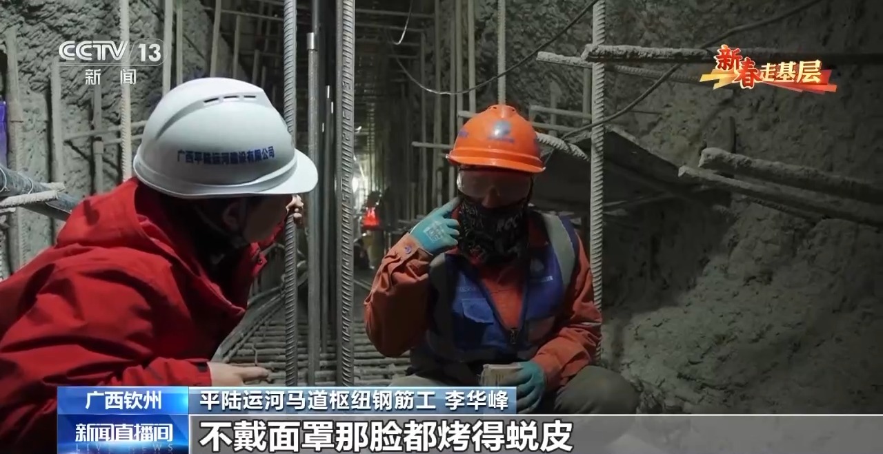 平陸運河馬道樞紐鋼筋工 李華峰:你看我戴個布面罩,不戴面罩臉都烤得蛻皮,烤狠了容易臉容易烤爛,溫度要有幾千攝氏度,電焊比氣割的溫度要高。