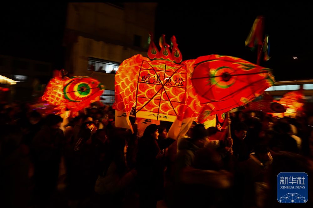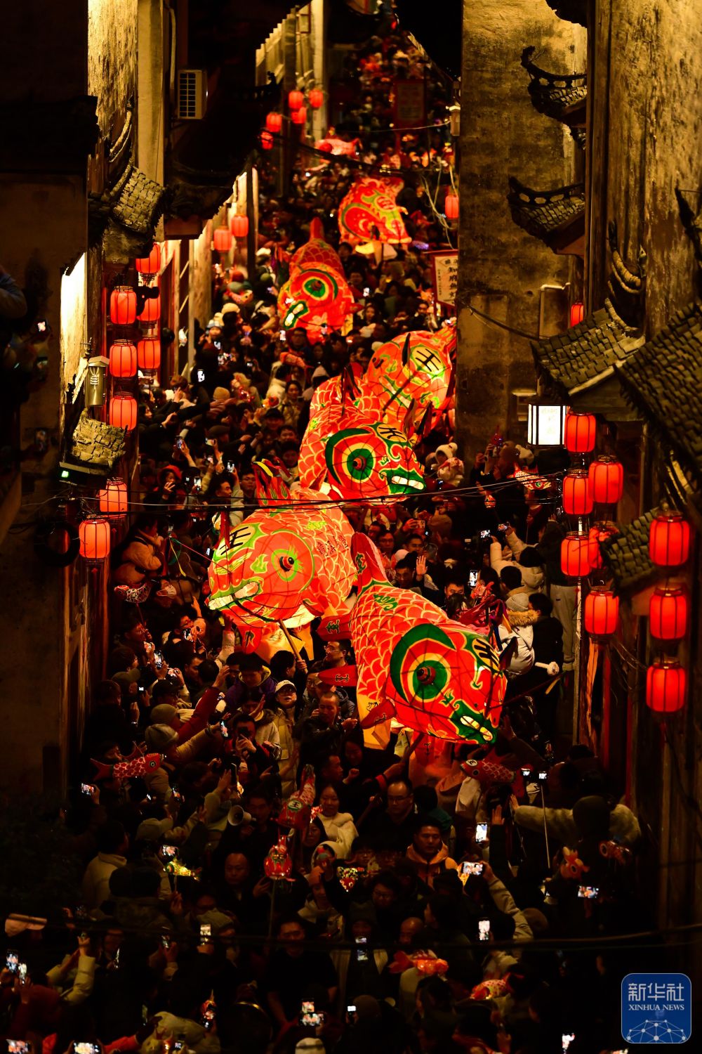 2月7日,瞻淇村魚燈隊(duì)在村中表演。
