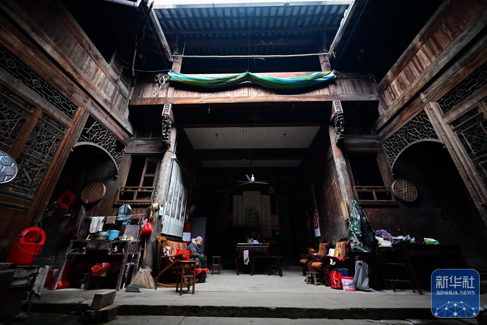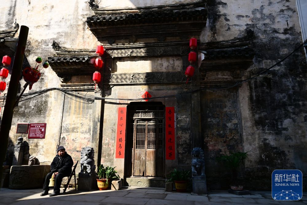 2月8日,村民在瞻淇村曬太陽(yáng)。