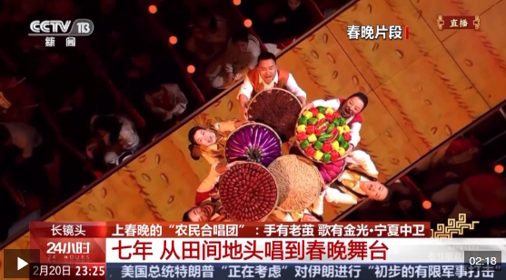 除夕夜,寧夏中衛(wèi)市中寧縣大戰(zhàn)場鎮(zhèn)農民合唱團登上央視春晚舞臺,與廖昌永、鳳凰傳奇等知名歌手同臺,用最質樸的嗓音,唱出《來曬秋》的豐收喜悅。