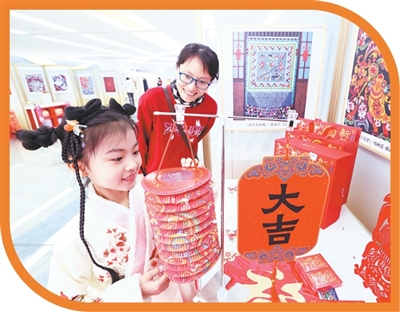 小朋友在北京奧運博物館新春系列活動上觀賞燈籠。
