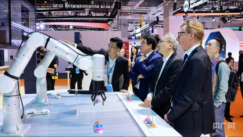 第八屆進博會上,科技企業(yè)展商在向觀眾介紹產(chǎn)品(央廣網(wǎng)記者 何智康 攝)