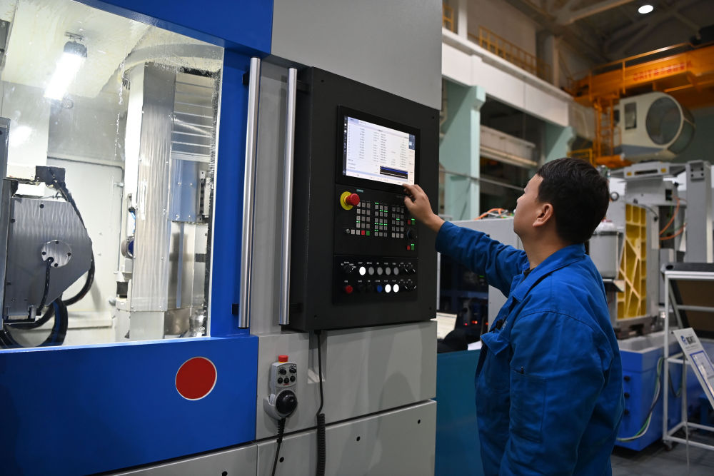 2025年10月28日,在秦川機床工具集團股份公司總裝車間,工作人員在調(diào)試機床。新華社記者 肖瀟 攝