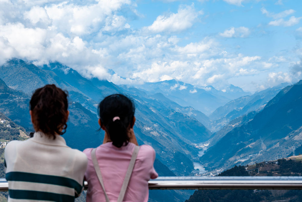 2025年10月20日,游客在云南省福貢縣匹河怒族鄉(xiāng)老姆登村的觀景臺拍攝怒江大峽谷風(fēng)光。新華社記者 胡超 攝
