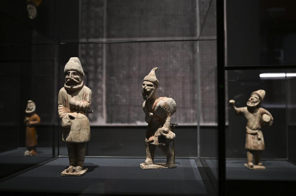 “歷史之遇——中國與西亞古代文明交流展”于1月12日至4月11日在故宮午門正殿展廳舉行。這是展出的陶彩繪人俑(1月10日攝)。新華社記者金良快攝