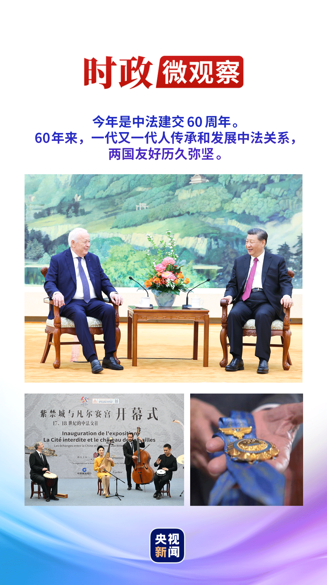 今年4月8日,再次會見中國人民這位老朋友,習(xí)近平主席撫今追昔:“60年來,一代又一代人傳承和發(fā)展中法關(guān)系,兩國友好歷久彌堅。中方珍視中法友誼,愿同法方進一步加強高層交往,密切交流合作,推動中法關(guān)系邁上更高水平。”