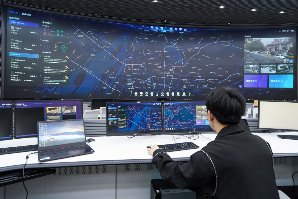 工作人員在江蘇省南京市城市運行管理中心指揮大廳操作“一網(wǎng)統(tǒng)管”指揮調(diào)度系統(tǒng)(2024年4月11日攝)。近年來,南京市積極構(gòu)建數(shù)字化、智能化、智慧化城市治理體系,將城市運行“一網(wǎng)統(tǒng)管”作為推進(jìn)城市數(shù)字化轉(zhuǎn)型、城市治理體系和治理能力現(xiàn)代化的重要工作。