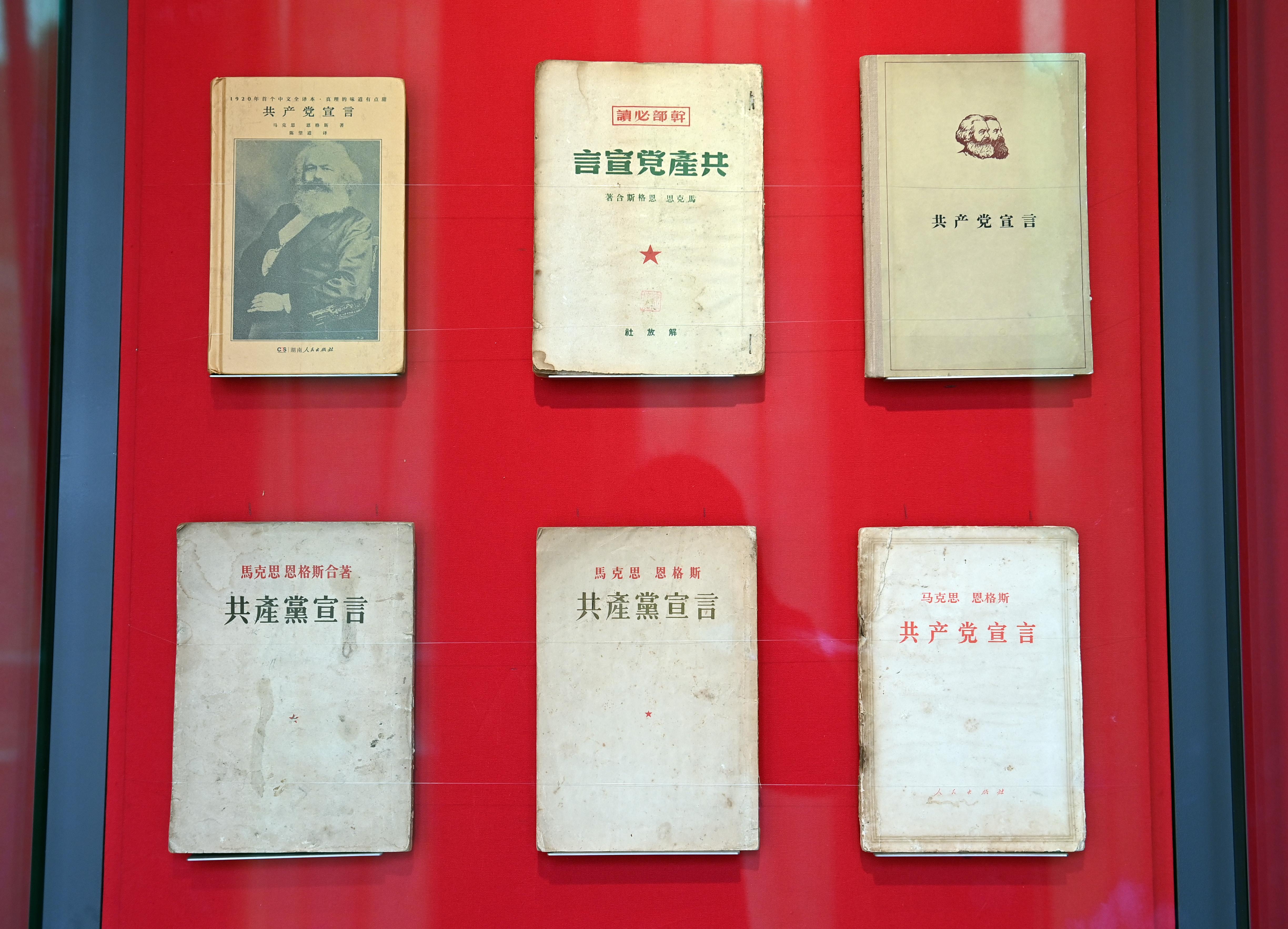 中國國家版本館中央總館展示的不同版本的《共產黨宣言》。