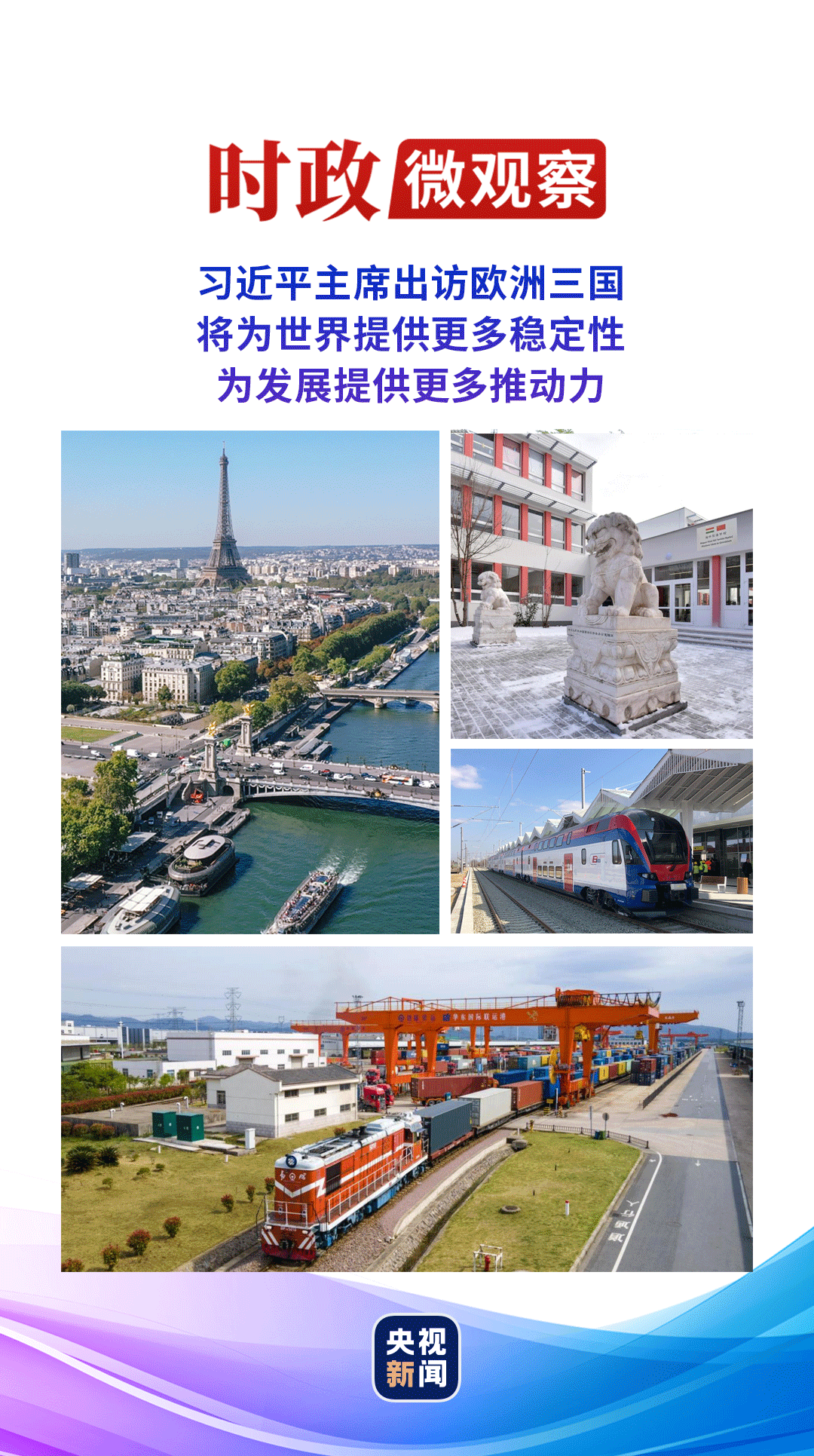 這是習(xí)近平主席今年首次出訪,也是習(xí)近平主席第三次對法國進(jìn)行國事訪問、第二次對塞爾維亞進(jìn)行國事訪問、首次對匈牙利進(jìn)行國事訪問,對推動中國同法國、塞爾維亞、匈牙利以及中歐關(guān)系整體發(fā)展具有重要意義,也將為世界和平發(fā)展注入新動能。