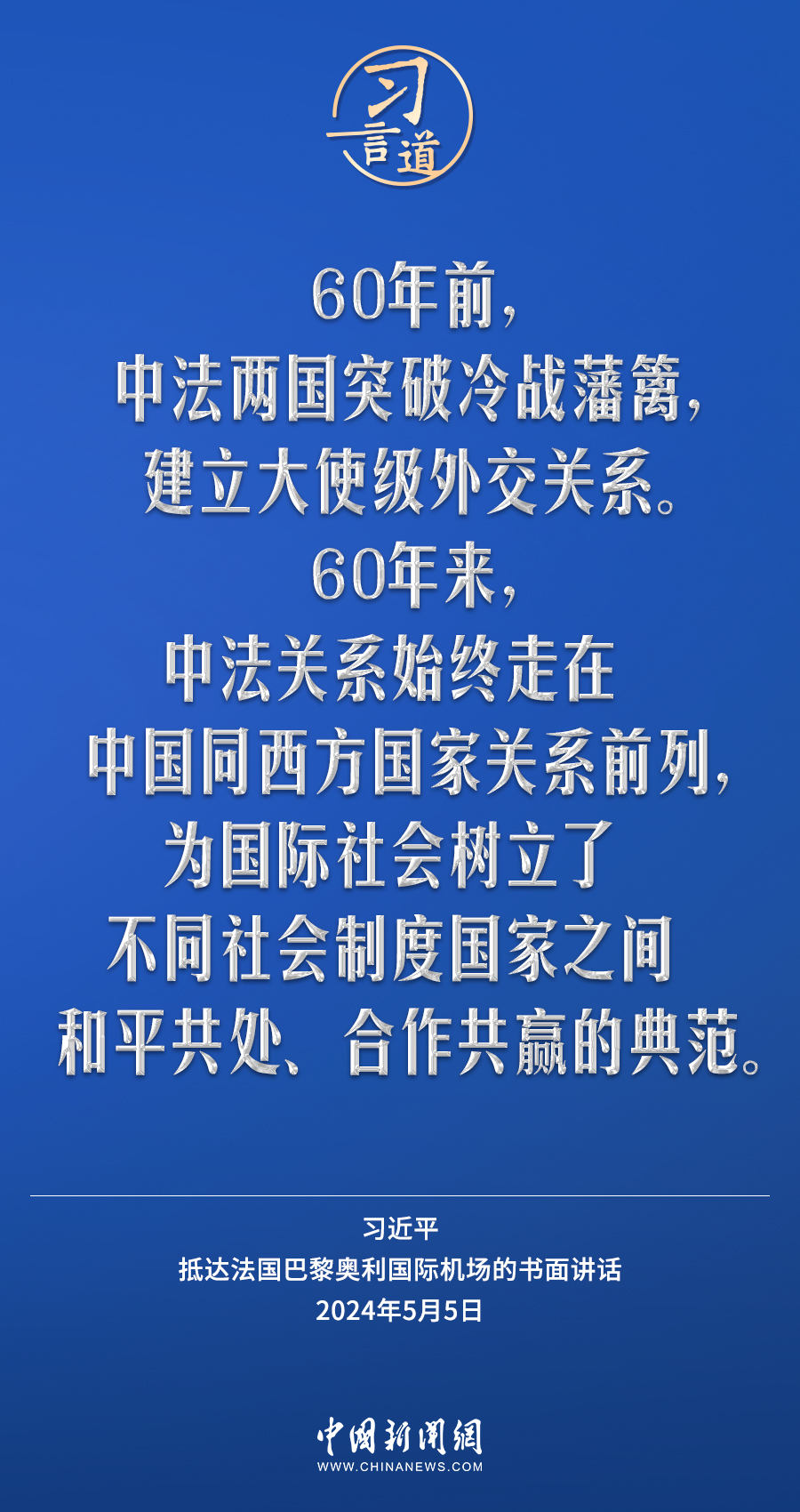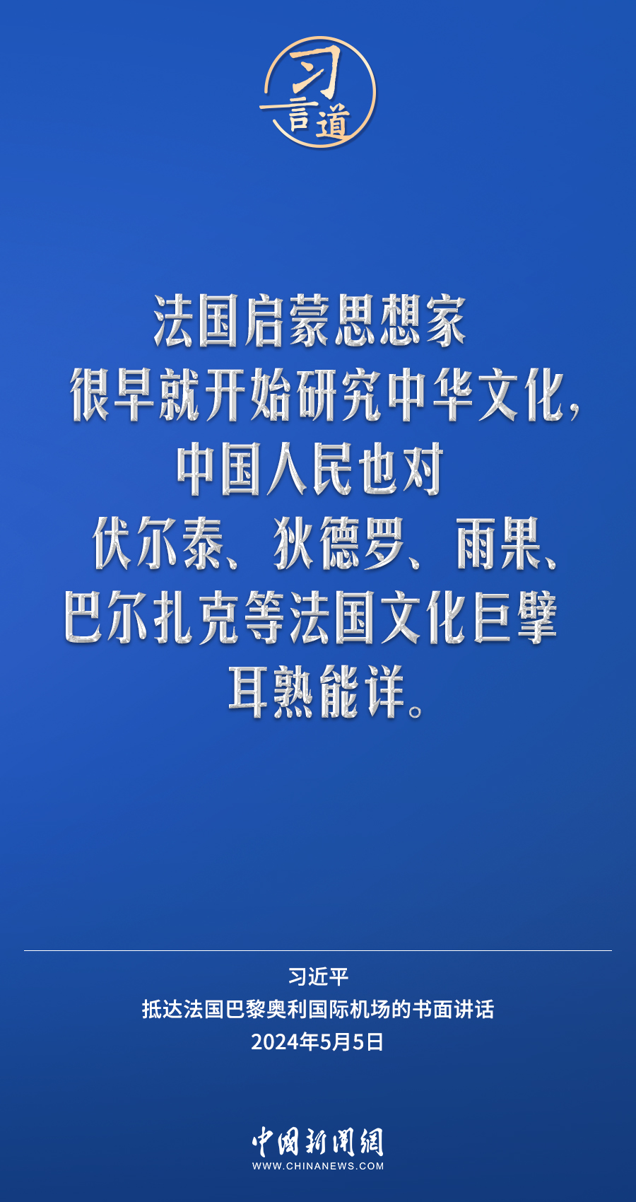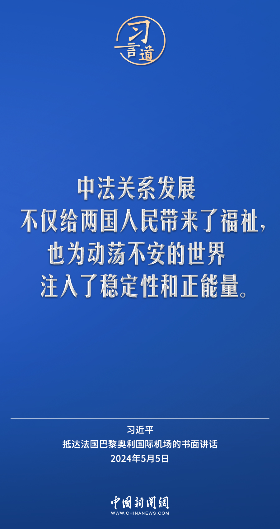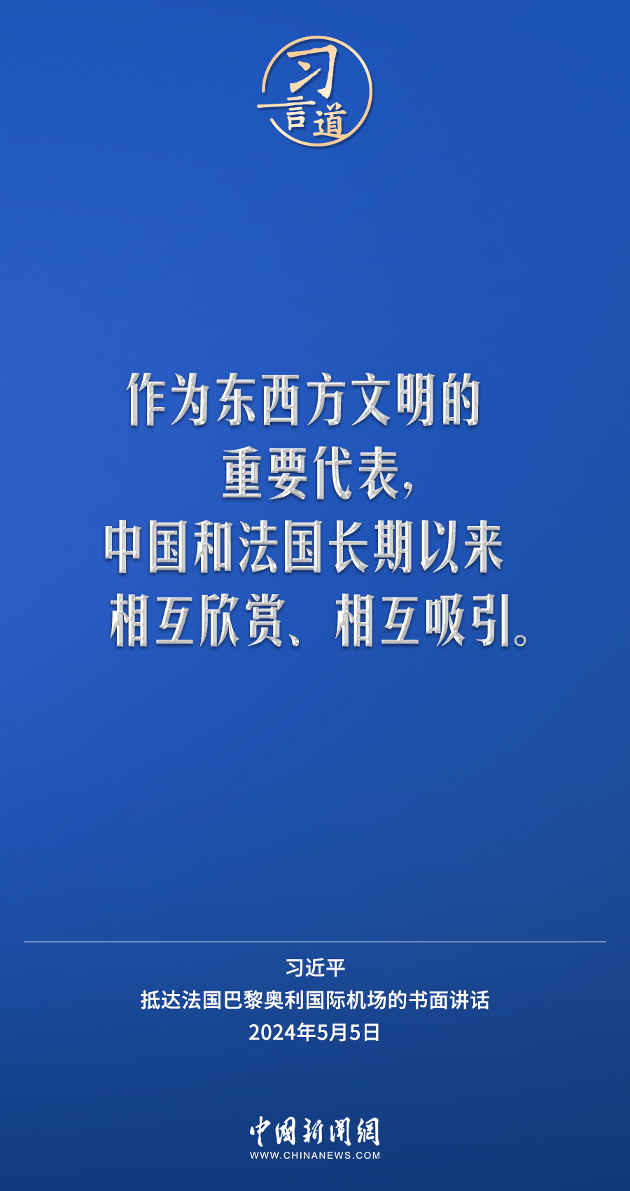當?shù)貢r間5月5日下午,國家主席習(xí)近平抵達巴黎,開始對法國進行國事訪問。在抵達法國巴黎奧利國際機場的書面講話中,習(xí)近平指出——