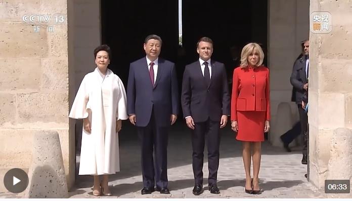 下午,馬克龍總統(tǒng)在榮軍院為習(xí)主席舉行隆重盛大的歡迎儀式。始建于1670年的榮軍院,是法國(guó)重要的歷史建筑,也是該國(guó)的文化地標(biāo)。10年前習(xí)主席首次訪法時(shí),歡迎儀式也是在榮軍院廣場(chǎng)舉行。5年前習(xí)主席訪法時(shí),馬克龍總統(tǒng)在著名的凱旋門(mén)舉行了歡迎儀式。