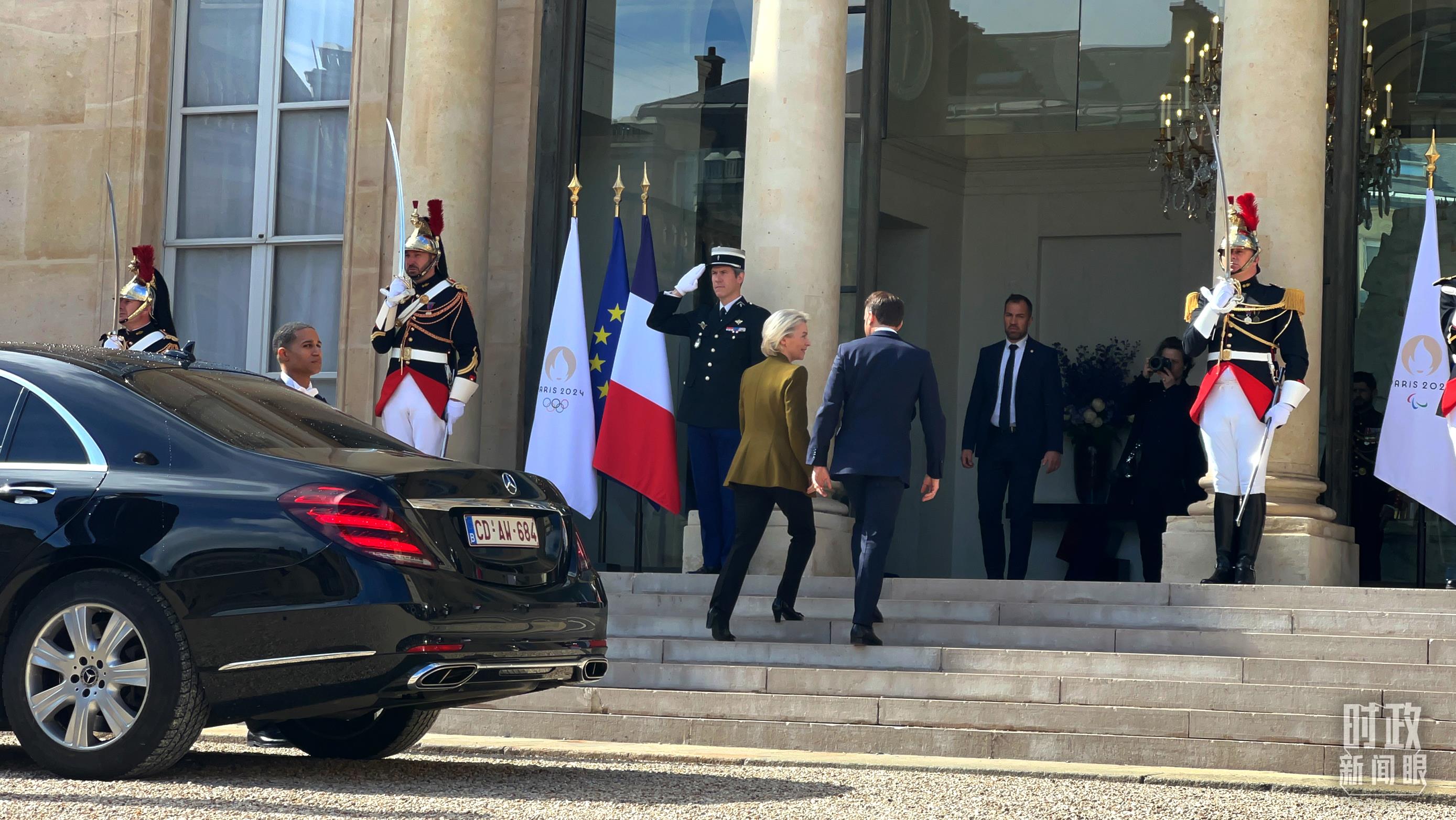 歐盟委員會(huì)主席馮德萊恩抵達(dá)愛(ài)麗舍宮。(總臺(tái)央視記者張洛嘉拍攝)