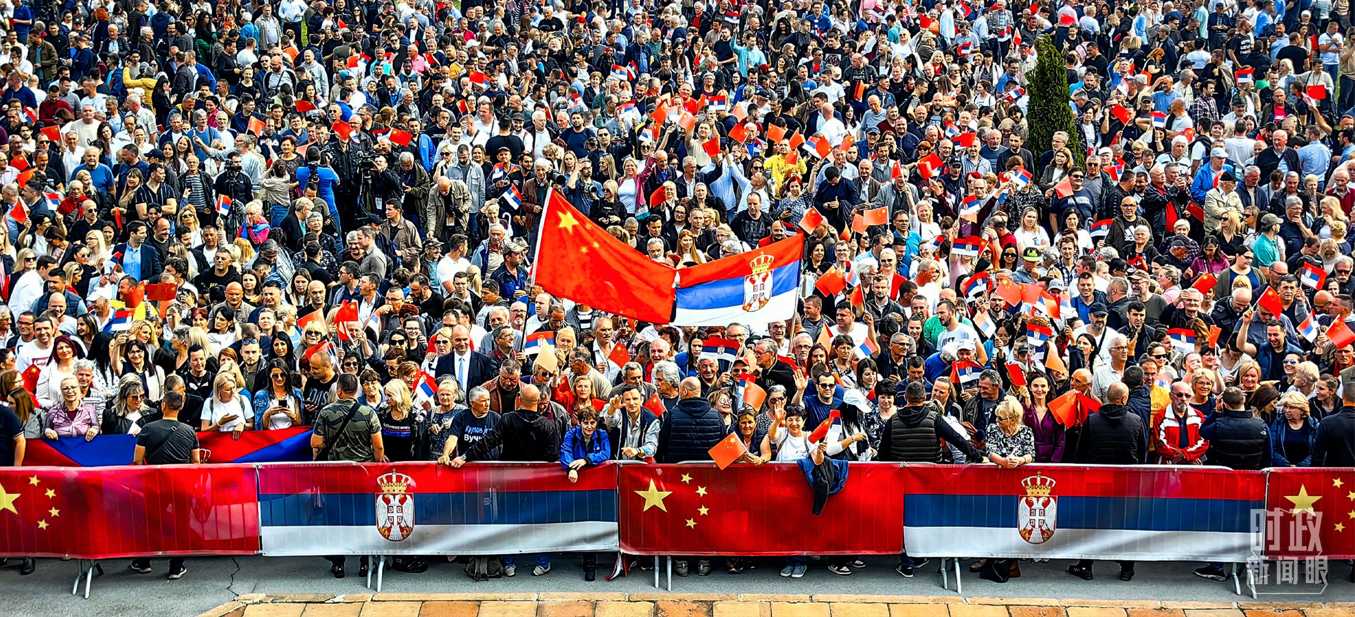 一萬(wàn)五千名塞爾維亞民眾齊聚塞爾維亞大廈廣場(chǎng),熱烈歡迎習(xí)主席到訪。(總臺(tái)央視記者段德文拍攝)