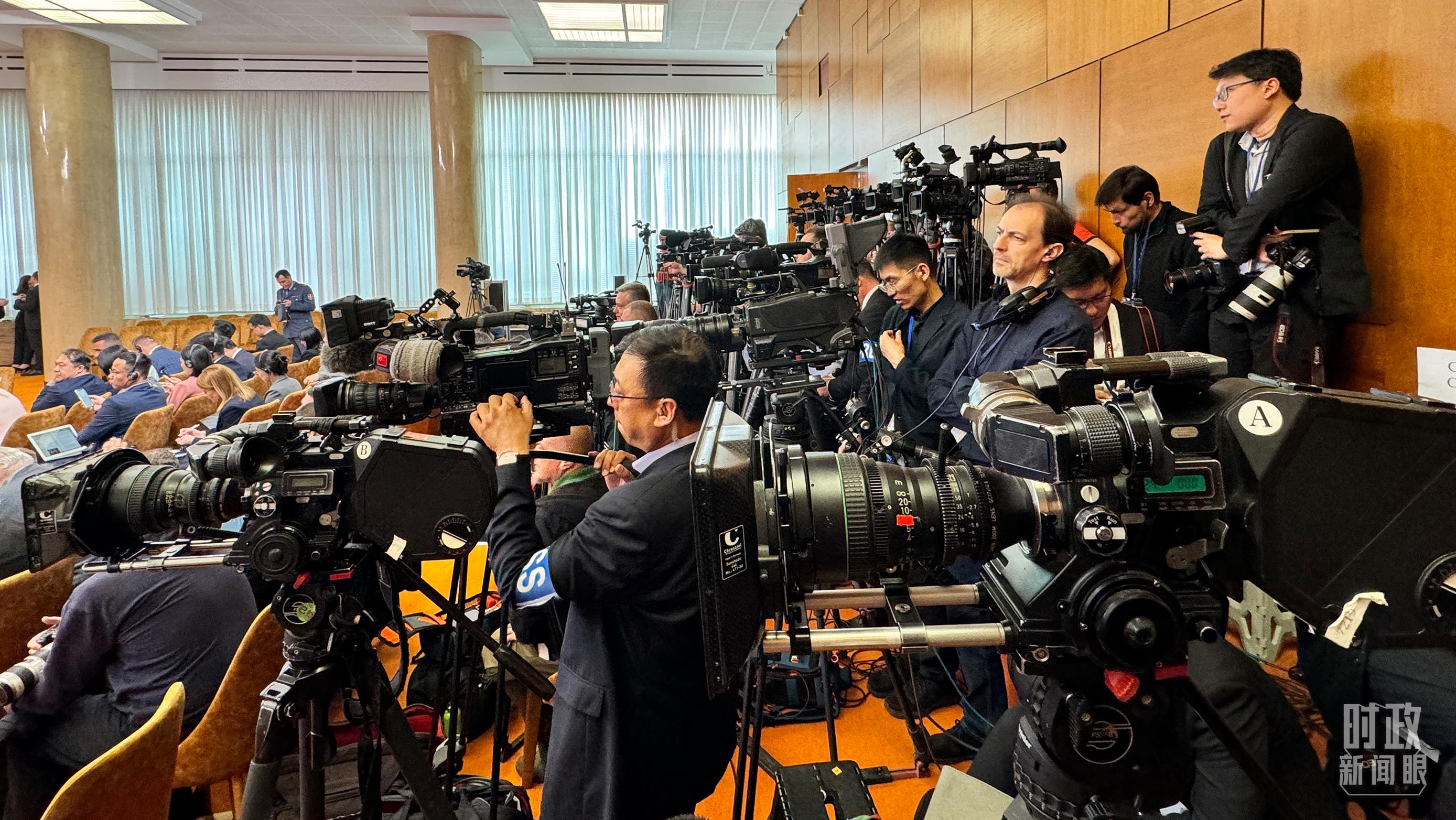 這是中塞兩國(guó)元首共見(jiàn)記者開(kāi)始前的現(xiàn)場(chǎng),記者云集。(總臺(tái)央視記者李增仁拍攝)