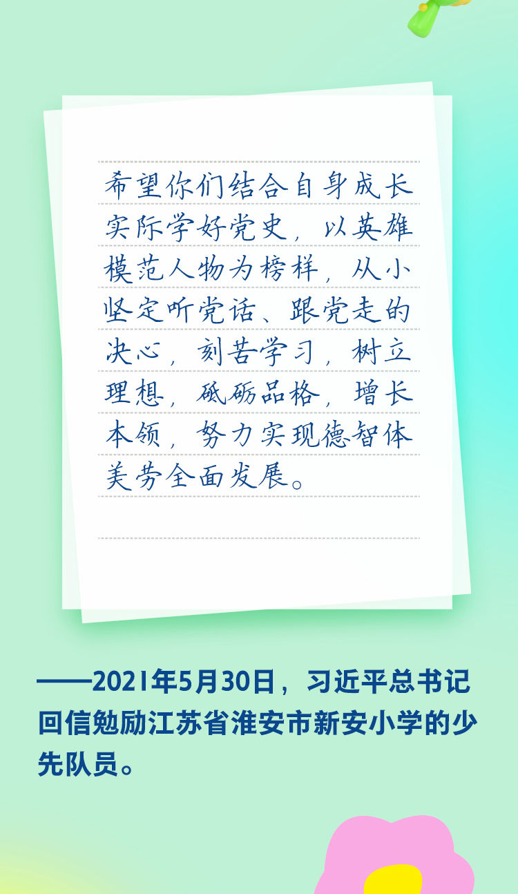 在“六一”國(guó)際兒童節(jié)即將到來之際,習(xí)近平總書記回信勉勵(lì)四川省南充市嘉陵區(qū)之江小學(xué)學(xué)生“堅(jiān)持德智體美勞全面發(fā)展,爭(zhēng)做愛黨愛國(guó)、自立自強(qiáng)、奮發(fā)向上的新時(shí)代好少年”,并祝全國(guó)小朋友們“六一”國(guó)際兒童節(jié)快樂。 [詳細(xì)]