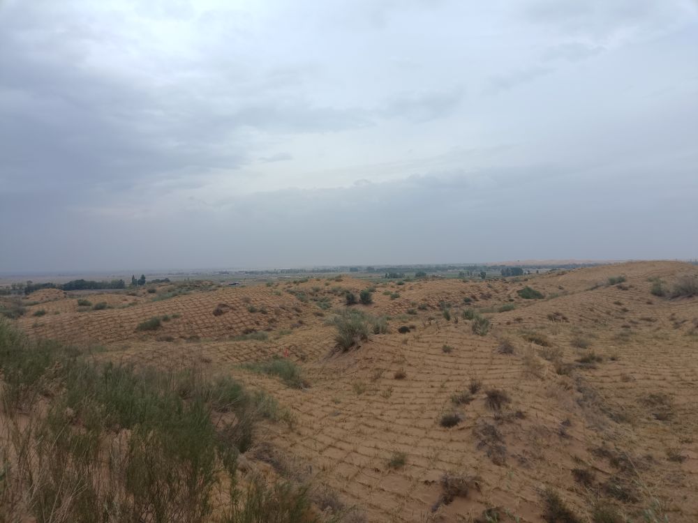 寧夏吳忠市鹽池縣和內(nèi)蒙古鄂爾多斯市鄂托克前旗交界處的流動沙丘,今年剛剛完成治理。(孫果攝)