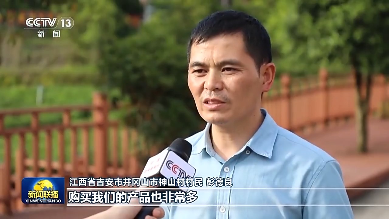 江西省吉安市井岡山市神山村村民 彭德良:游客越來越多,購(gòu)買我們的產(chǎn)品也非常多,給我們?cè)黾恿撕艽蟮氖杖搿?/p>