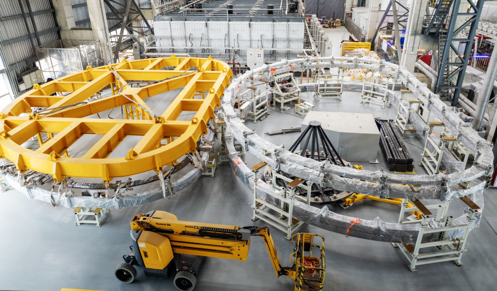 2024年5月27日在聚變堆主機關(guān)鍵系統(tǒng)綜合研究設(shè)施(CRAFT)園區(qū)內(nèi)拍攝的TF超導(dǎo)線圈生產(chǎn)線(無人機照片)。該研究設(shè)施將為未來中國聚變實驗堆、工程堆的設(shè)計建設(shè),搭建參數(shù)高、性能全、功能完備的綜合性研究及測試平臺。