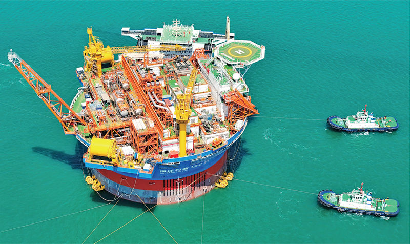 “??惶?hào)”,是亞洲首艘圓筒型浮式生產(chǎn)儲(chǔ)卸油裝置。該裝置集原油生產(chǎn)、存儲(chǔ)、外輸?shù)裙δ苡谝惑w,被網(wǎng)友們昵稱為“超級(jí)能源碗”,也是完全由我國自主設(shè)計(jì)建造的海上油氣加工廠。圖為2024年5月12日,“??惶?hào)”從中國海油青島國際化高端裝備制造基地離港啟運(yùn)。 人民圖片 張進(jìn)剛/攝