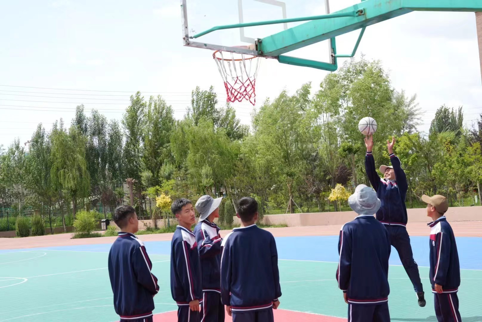 圖為果洛西寧民族中學(xué)的學(xué)生在籃球場揮灑汗水。喬 棟攝。
