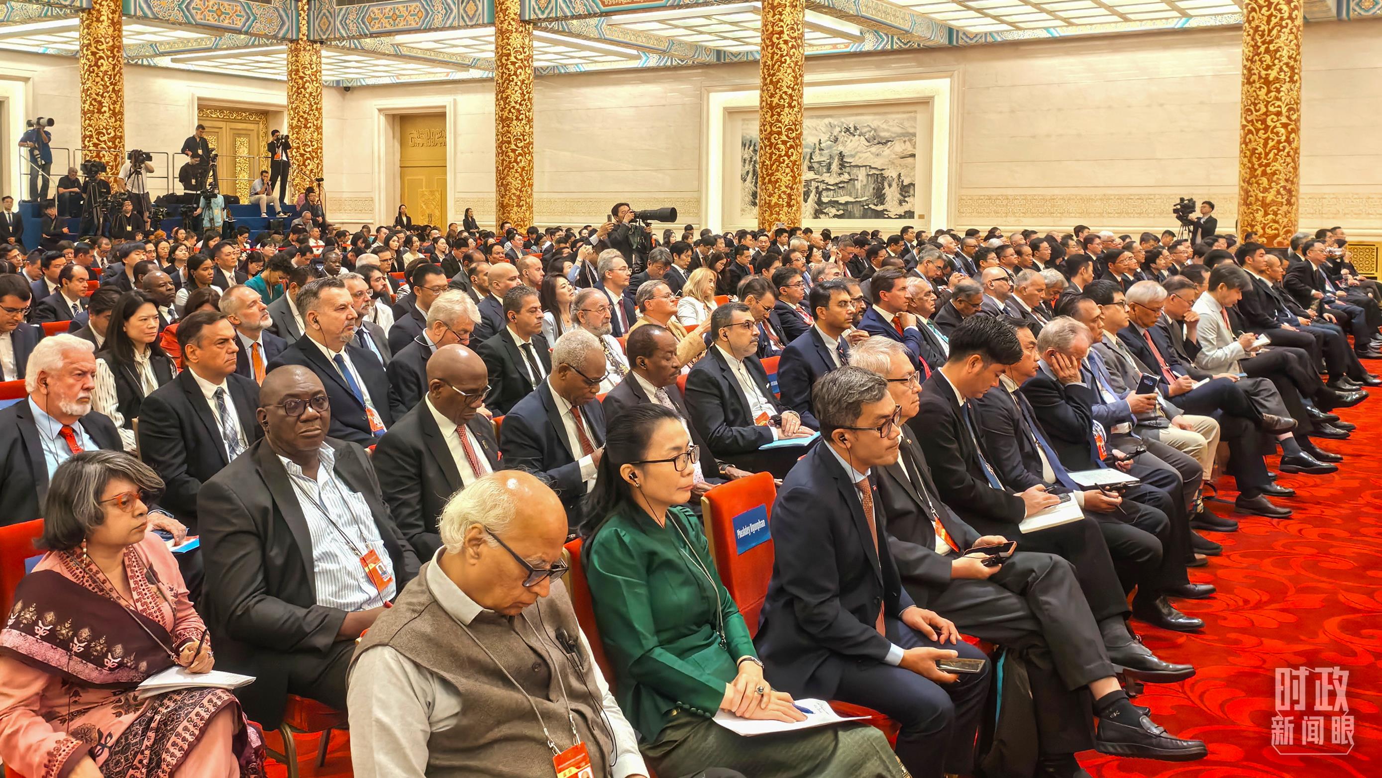 當(dāng)天,600余人共聚人民大會(huì)堂金色大廳,其中包括來(lái)自越南、緬甸、南非、埃塞俄比亞、巴西、法國(guó)等國(guó)的政要,同時(shí)還有國(guó)際和地區(qū)組織代表、來(lái)自100多個(gè)國(guó)家的駐華使節(jié)、中外專家學(xué)者、友好人士、媒體和工商界代表等。