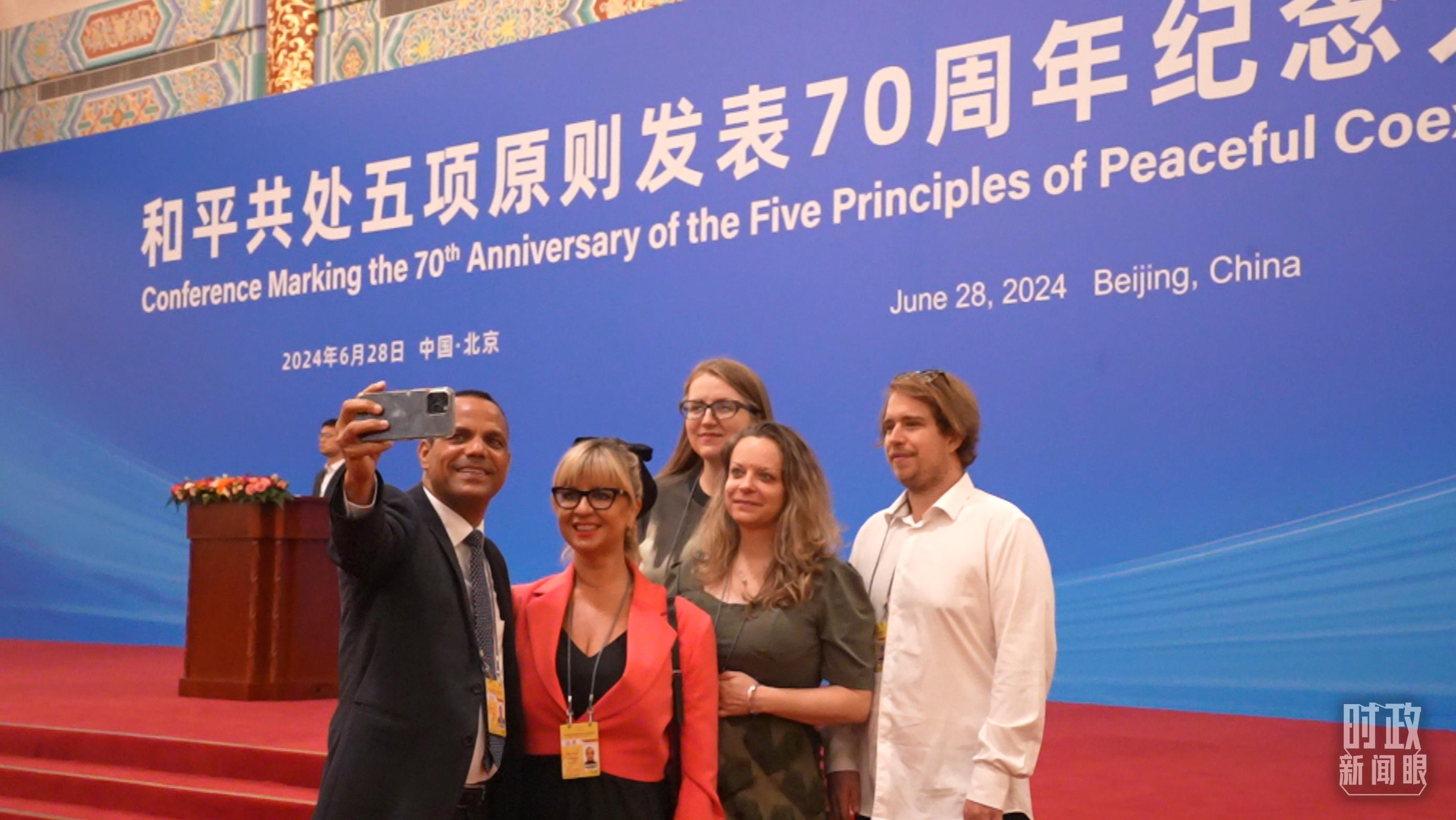 出席紀(jì)念大會(huì)的外國(guó)嘉賓在現(xiàn)場(chǎng)合影留念。(總臺(tái)央視記者姚瑤拍攝)